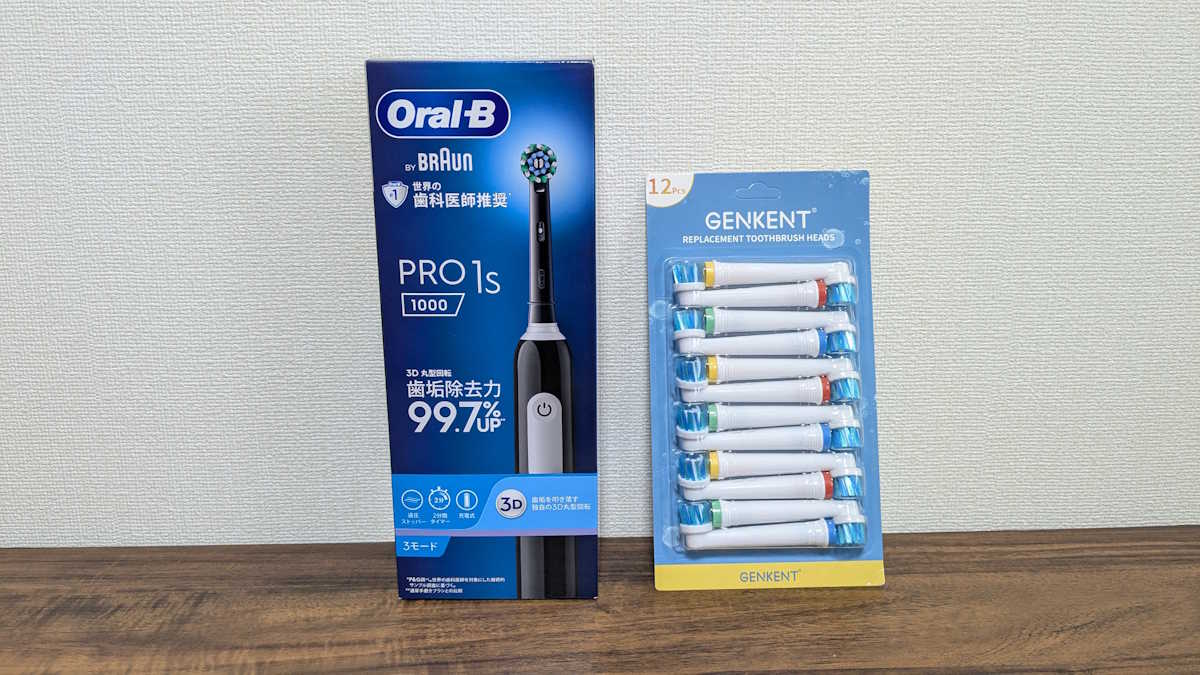 電動歯ブラシといっても値段によってピンキリで、安いもので4~5千円、高いものでは数万円とあり、初心者の私にはどれがいいのかさっぱりだったので、とりあえず入門用としての位置づけの「オーラルB PRO 1S」と、純正品の替えブラシがめちゃくちゃ高かったので、それとは別で互換性のある替えブラシも一緒に購入しました。
