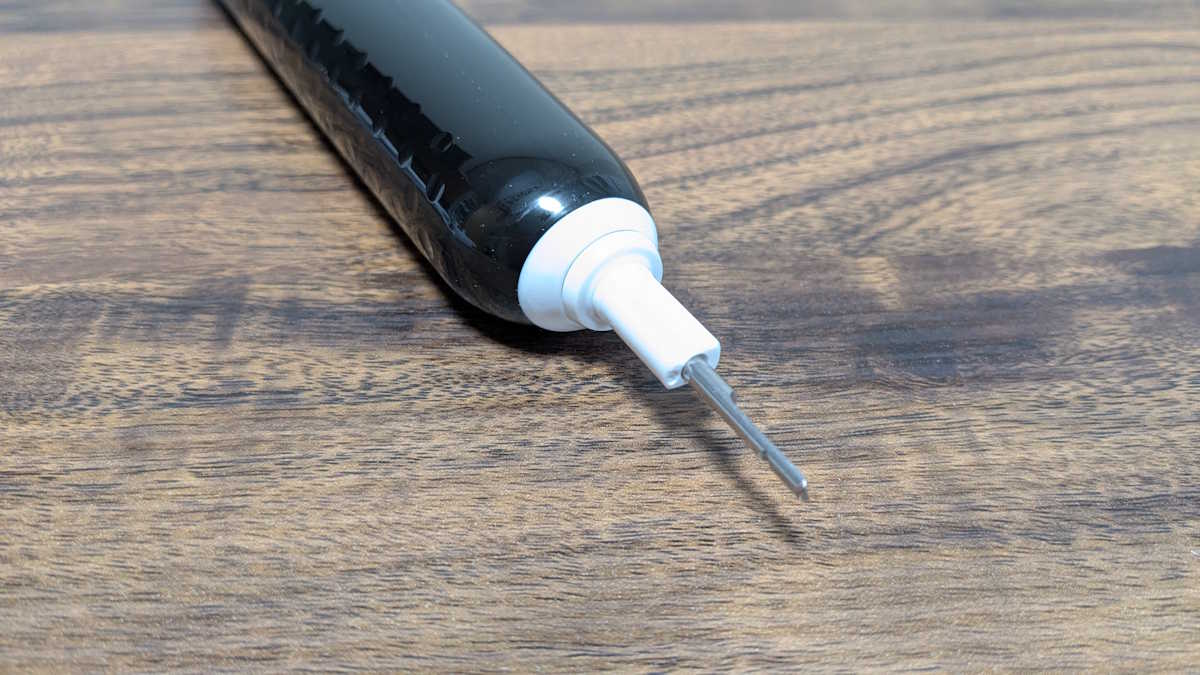 最初、電動歯ブラシといったら、ブラシが一方向に回転して磨くもの思っていましたが、それは完全にこちらの勘違いで、本体の先端部分が左右に振動することで、ブラシが左回転、右回転を高速に繰り返します。